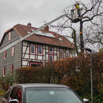 Ist der zu pflegende Baum von einer Straße oder einem Parkplatz gut anfahrbar? Dann empfielt sich eine Pflegemaßnahme mittels Hubsteigereinsatz. Hierbei wird effizient und sicher auch dort gearbeitet, wo bauliche Enge sonst zu Nachteilen führen könnten. Noch ein Tipp: Fragen Sie Ihre Nachbar:innen. Gegebenenfalls besteht auch bei ihren Bäumen ein Pflegebedarf, so dass sich Anfahrt- und Maschinenkosten teilen lassen.